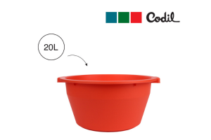 Bacia Faso 20, resistente e funcional, capacidade 20L, dimensões 454 x 227 mm, apta para contacto alimentar, ideal para lavagem e armazenamento de grandes quantidades de alimentos, preparação de ingredientes ou tarefas domésticas e profissionais de médio porte. CORES