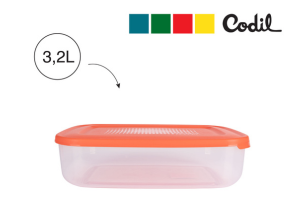 Caixa Bayonne GM, 295 x 195 x 80 mm, 3.2L, ideal para armazenar refeições preparadas, sobras ou transportar almoços e lanches, com tampa que sela eficazmente e mantém os alimentos frescos, resistente e empilhável para otimização de espaço, apta para microondas e máquina de lavar loiça. CORES SORTIDAS