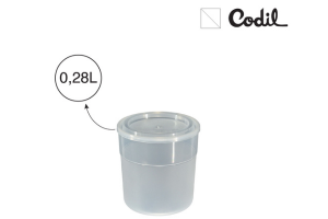 Copo Arc com Tampa, 75 x 82 mm, 0,28L; Copo compacto e portátil com tampa de vedação estanque, ideal para snacks secos e húmidos, iogurte, gelatina, purés ou pequenas porções; reutilizável, empilhável, fácil de limpar; Apta para contacto alimentar; Apta para máquina de lavar loiça; Produto reciclável no final de vida; Made in Portugal.