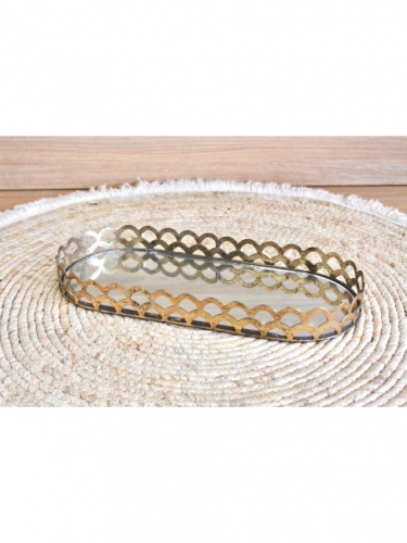 BANDEJA DECORACAO METAL ESPELHO 42X34X7 DOURADO BD-163641